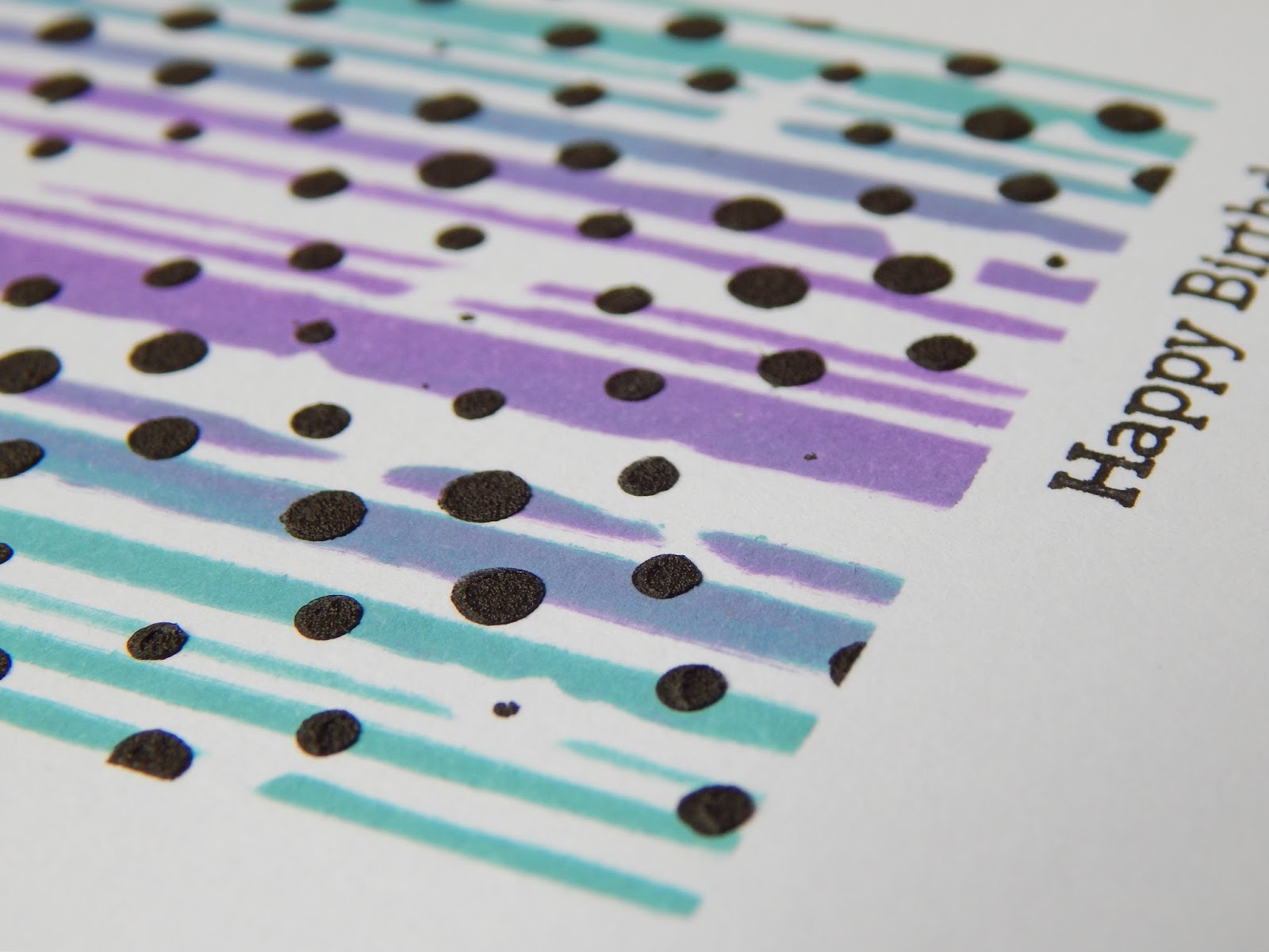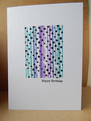 Once again I was inspired by the challenge at "Less is More" - one layer with stripes and spots. I masked off the rectangle and then ink blended the stripes with distress oxides and the used black texture paste through a spotty stencil. Added a sentiment and that was it!