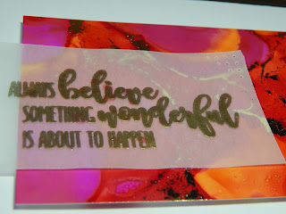 One of the videos was about creating backgrounds with alcohol ink and then adding foiling to the almost dry ink - the video was by Kelly Latevola. So I tried it ... and loved it!! This card is made with just a small piece from one of the backgrounds: