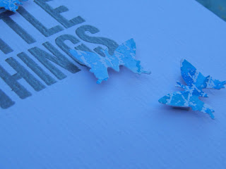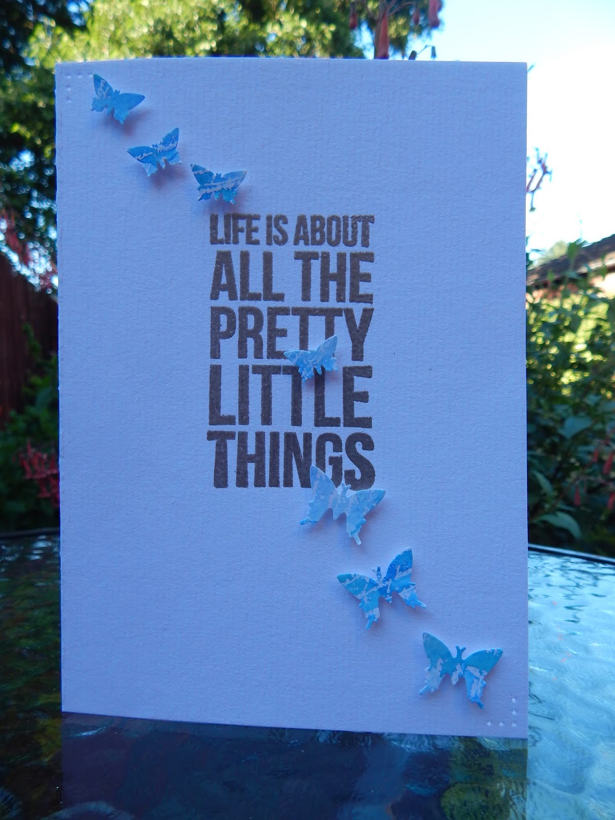 I spotted the challenge at "Less is More" encouraging us to use our 'bits box' to create a card ... so out came all the bits I've saved along with indecision!! After much procrastination I decided that the butterflies would be just the job!