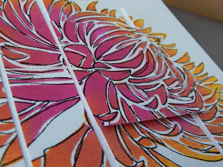 I die cut the doily twice once in black once in teal, I then pieced the teal pieces into the black doily. I used to circle dies to remove the centre and to create a frame. The centre of the doily is foam backed to add some dimension. I covered the whole image with clear wink of stella to add a little sparkle - you can just about see it in the photographs.