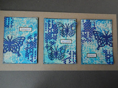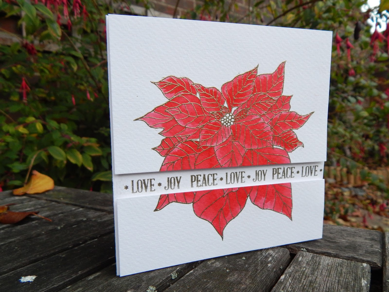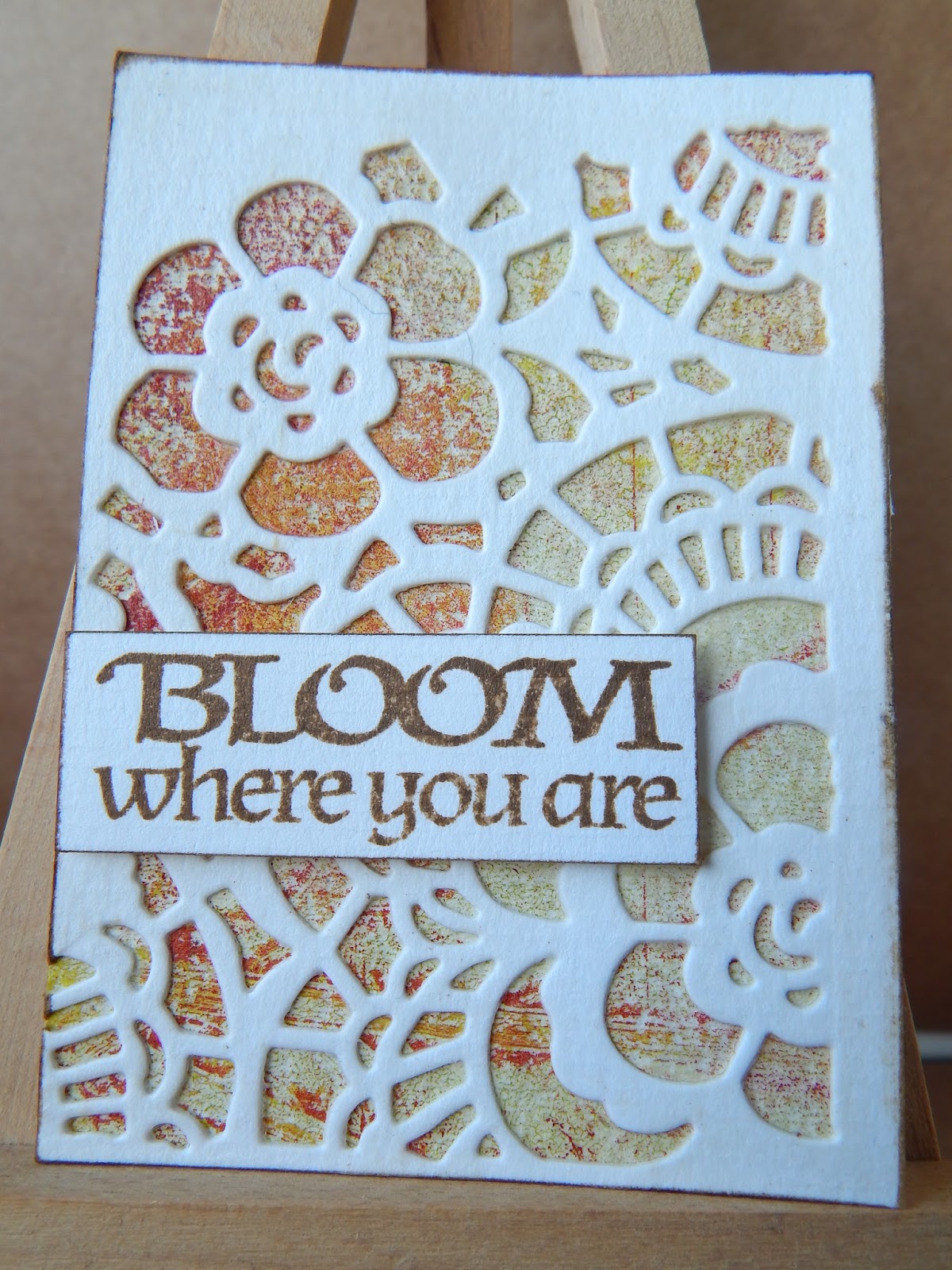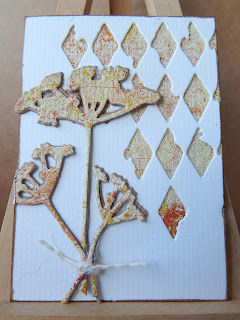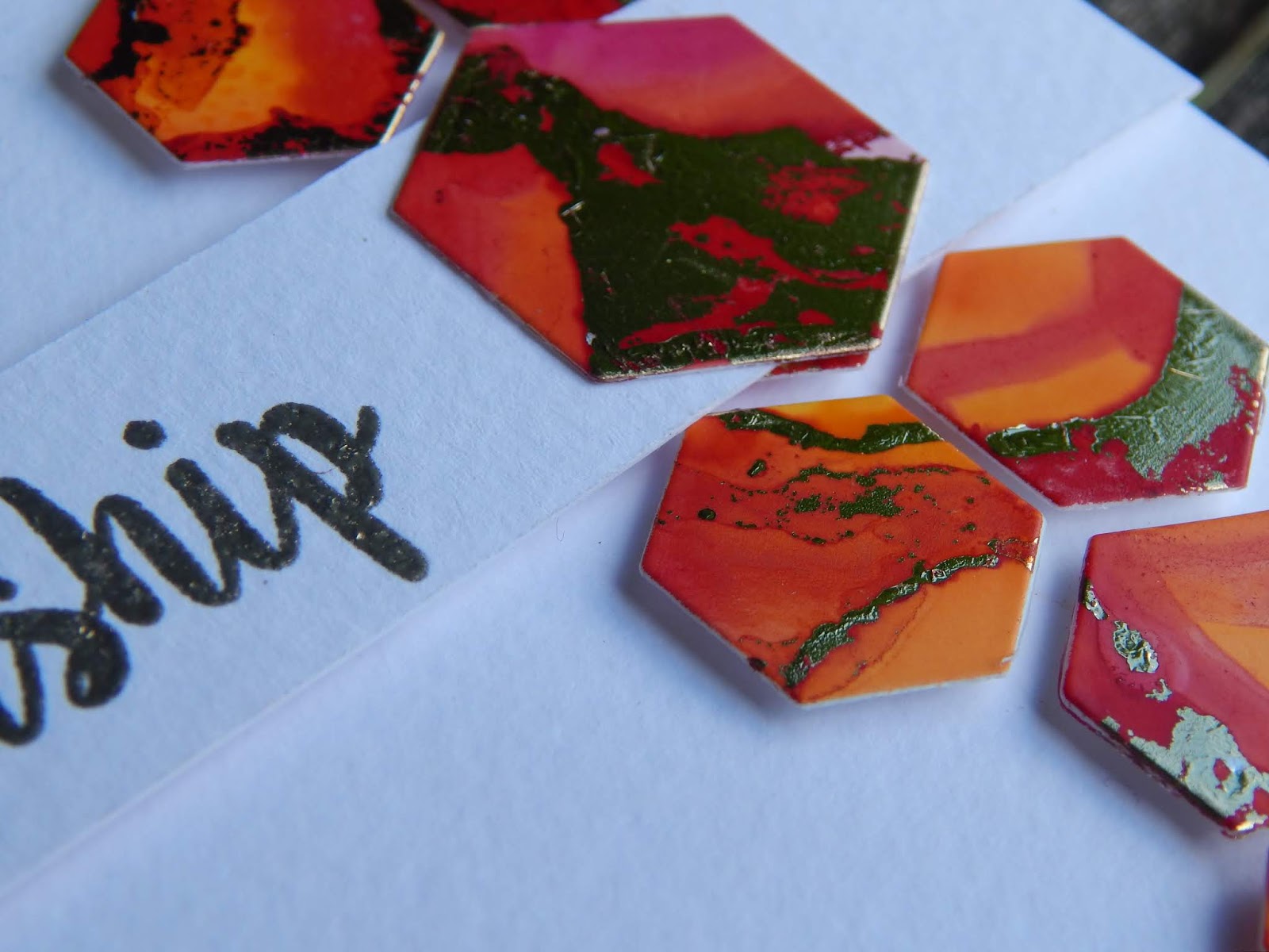 I've been playing with alcohol inks recently ... makes a change from gelli printing ... creating backgrounds with added foiling. I love the effect that the gold adds to the panel. For this card I die cut lots of hexagons and then spent ages (and ages) deciding on the layout ... I must have tried hundreds of layouts before arriving on the above. I heat embossed the sentiment with gold embossing powder before adding it to the card.